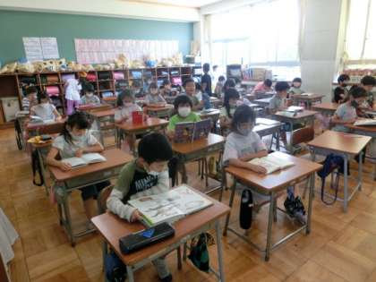 どのクラスも、静かに本を読んでいる子が多いようです。