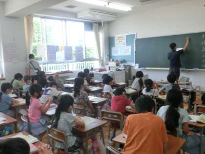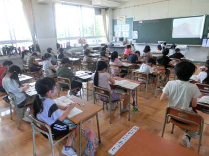授業では、自分の意見を発表したり、話を聞いてノートに書いたりし、集中して取り組んでいます。