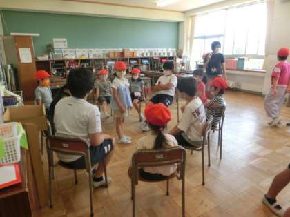たてわり班遊びは、6年生が考え、みんなで楽しみました。いす取りゲーム、しんぶんじゃんけん、伝言ゲーム等のいろいろな遊びをしました。