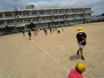 3年生:「10mってどれくらい?」:6月22日(火) 公開日 2021/06/23 更新日 2021/06/23 3年生の部屋 算数では、見当をつけて長さを測る学習を行ってきました。今日は、10mがどのくらいかグラウンドで見当をつけ、実際の10mと比べてみました。2年生での学習を生かし、手を大きく広げた長さが約1mだというヒントから考えていました。 「10mって思ったより長かった!」「短かった」「大体あっていた」など、いろんなつぶやきがありました。