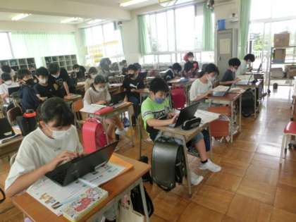 集中しています:6月24日(木) 公開日 2021/06/24 更新日 2021/06/24 今日の新保っ子 授業では、集中して話を聞いてノートを書いたり、クロムブックで発表資料を作成したりしています。