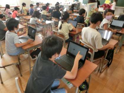 避難訓練終了後は、各学級でクロムブックに入力して振り返りを行いました。
