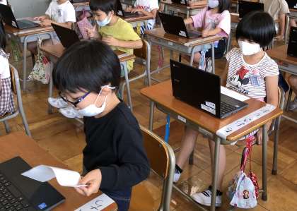 クロムブックの電源が入ると、大きな歓声が上がりました。これからマナーを守りながらパソコン、インターネットを使っていきます。ご家庭でもよりよい使い方について話し合われたようで、次の日に「使う場所決めたよ」など言っている子供が見られました。