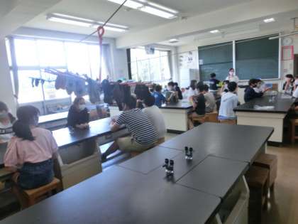 授業では、集中してグループで話合ったり、実習して確かめたりしています。