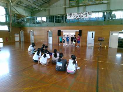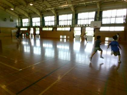 鬼ごっこやドッジボール、クイズなど、体育館の活動は暑くて汗だくになりましたが、みんな楽しく過ごしました。