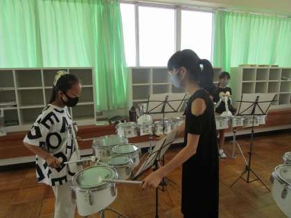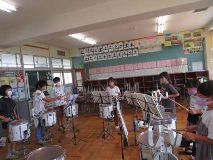 「鼓隊クラブ夏休み練習」:7月29日(木) 公開日 2021/07/30 更新日 2021/07/30 今日の新保っ子 今日は第1回目の夏休み練習がありました!今回は打楽器の講師の先生に来ていただき、持ち方やたたき方などの基礎的な練習方法や、今行っている曲を見ていただいてアドバイスをしていただきました。また、上級生が下級生に優しく教える場面もありました。 夏休みですが、練習にとっても真剣に取り組むみんなが素晴らしいです!!