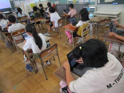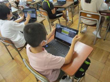 3年生:「小さな自分のお気に入り」:9月6日(月) 公開日 2021/09/06 更新日 2021/09/06 3年生の部屋 図画工作科では、自分の写真をラミネートし、「小さな自分」として学校のお気に入りの場所へ行き、クロムブックで写真を撮るという活動を行いました。 今日は、それぞれが撮影した写真をジャムボードに載せ、互いにコメントをするという活動を行いました。「ここどこ!?」「楽しそうだね!!」とつぶやきながら入力していました。