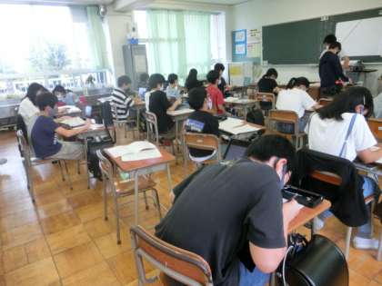 授業では、ノートやワークシートに自分の考えを書いたり、友達の考えから自分の考えの変化を書いたりして書く力を高めるようにしています。