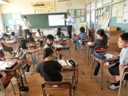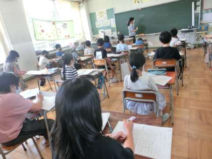 授業では、ノートに自分の考えを書いたり、ワークに書き込んだりしていま。