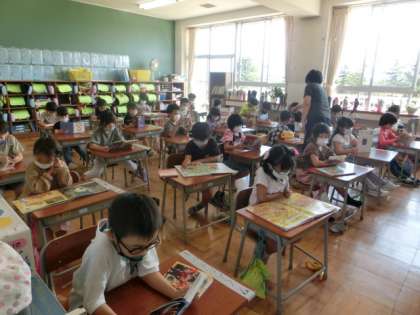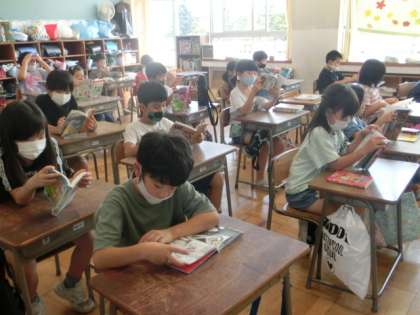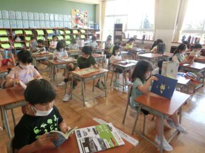 今日は「読書タイム」です。昼休み後は、各教室で静かに本を読んでいます。