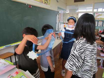 今週は、お楽しみ係が9月生まれの友達にメダルをプレゼントしていました。また、給食時には、ソーシャルディスタンスを意識して離れながら牛乳で乾杯をしました。コロナ禍でもできることでクラスを明るくしてくれています。