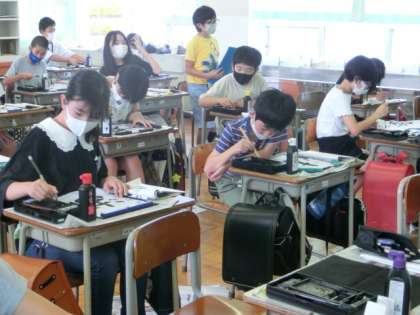 図工や書写の授業でも、集中して取り組んでいます。