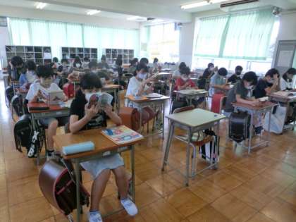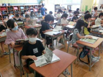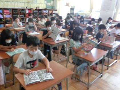 今日の昼休み後は「読書タイム」でした。子供たちは思い思いの本を真剣に読んでいます。