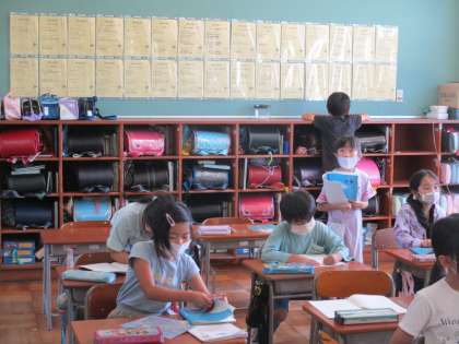 算数では、図形の学習が始まりました。教室の中を探してみると、たくさんの四角形を見つけることができました。子供たちは「頂点が4つあるかな」「辺は直線かな」と四角形の定義を確かめながら楽しく探していました。
