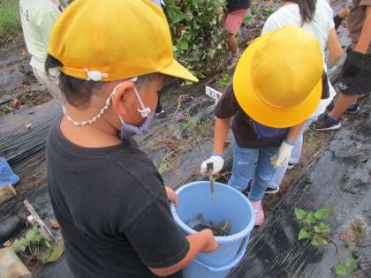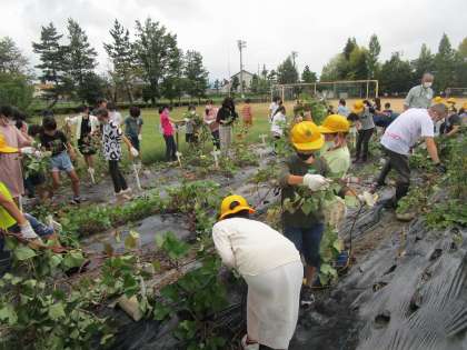 もうすぐ収穫のため、4年生と一緒にさつまいものつるを取りました。つるやマルチを外すのもあっというま!みんながどんどん働いてくれたからです。