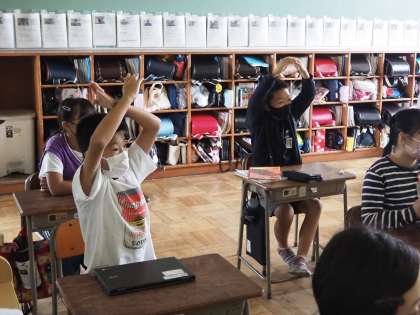 10月10日は目の愛護デーです。そこで、すこやか保健では、目の健康チェックや目を大切にするポイントについて、保健委員会から紹介しました。目の体操も行いました。