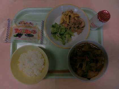 今日は、給食委員会が企画し、新保っ子が投票して決定した「新保っ子ハッピーメニュー」でした。カレーうどんとごはんでしたが、かれーうどんのうどんを食べた後、ごはんを入れるとスープカレーのようになって、2度おいしく食べれました。