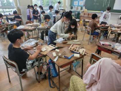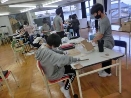 図工の授業では、思い思いの作品に仕上げるため、集中して取り組んでいます。