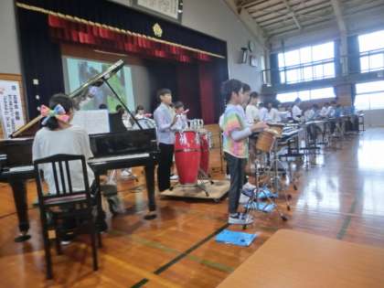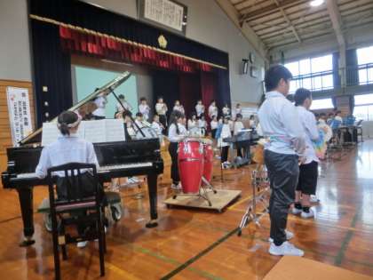 5年生は、「ドラえもん」「マンボNo.5」を合奏しました。