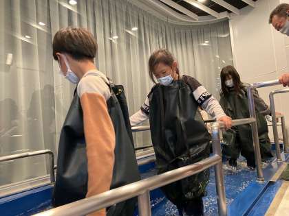 四季防災館では、地震体験・水消火器体験・流水体験等をしました。体験を楽しみながら、子供たちは災害の恐ろしさを感じ取っていました。