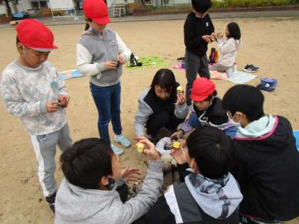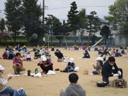 何とか、昼までには、「さつま汁」ができあがり、持参したおにぎりと一緒に食べました。一緒に焼いた「焼き芋」も食べました。