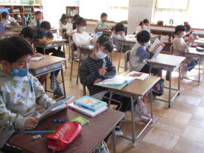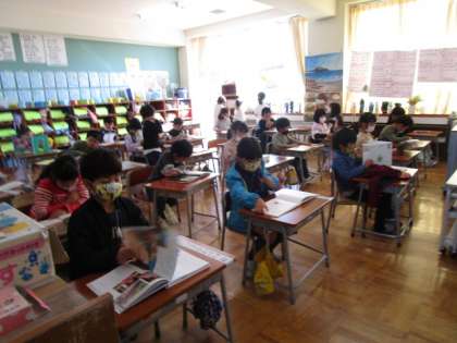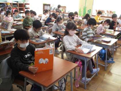 今日の昼休み後は、「読書タイム」でした。新保っ子たちは、各教室で、自分の読みたい本を静かに読んでいます。