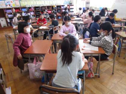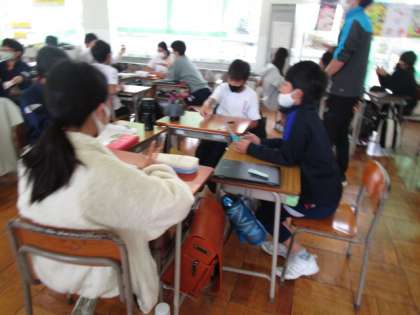 今日の「すこやかスマイル」は、「どれだけ長くちぎれるかな」の3回目でした。各学級では、メンバーを変えたり、方法を変えたりして、友達と協力していました。