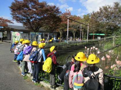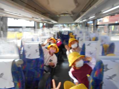 今日は、子供たちが待ちに待った校外学習でした!「どんな動物がいるかな」、「前にいたキリンいるかな?」と、朝からワクワクがとまらない子供たち。校長先生に「行ってきます」の挨拶をして、大きなバスに乗り込み、いざ、出発です!
