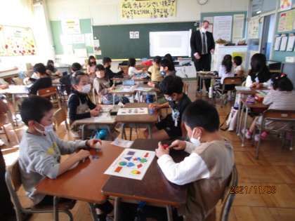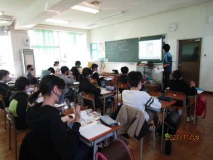 授業では、話を聞いてノートに自分の考えを書いたり、ペアで考えたりして集中して取り組んでいます。