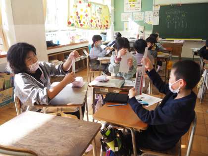 保健室:「すこやかスマイル『怒りの温度当てゲーム』(その1)」:11月11日(金) 公開日 2021/11/11 更新日 2021/11/11 保健室より 「シンえもん・しん太の『いつも心にアサーション』」第2話は、「怒りの温度当てゲーム」でした。動画を見て、各学級でも行いました。 先生が出すお題(怒りの出来事)を聞いて、気持ちの温度計を設定し、友達の怒りの温度を予想したり、自分だったら何度になるか話し合ったりしました。