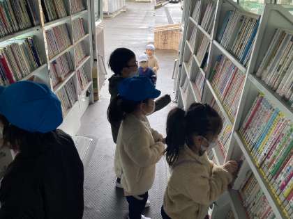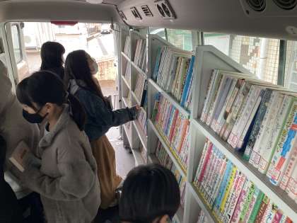 自動車文庫:11月12日(金) 公開日 2021/11/12 更新日 2021/11/12 今日の新保っ子 今日は、自動車文庫でした。バスの中の本棚から読みたい本を探しています。お気に入りの本を見付けたら、借りる手続きをしました。