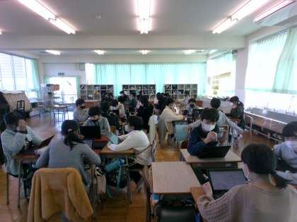 総合的な学習の時間では、1学期から、富山県の事業である「立山・黒部世界ブランド化」について調べてきました。1学期と夏休みに行った調べ学習と、先日の校外学習で学んだことを元に、賛成か反対かを述べる意見文にまとめました。今日はそれを元に、「立山・黒部世界ブランド化」に賛成か反対かについて意見を交流しました。