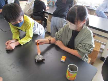 火を使う実験ということで、どの子も緊張感をもって取り組んでいました。