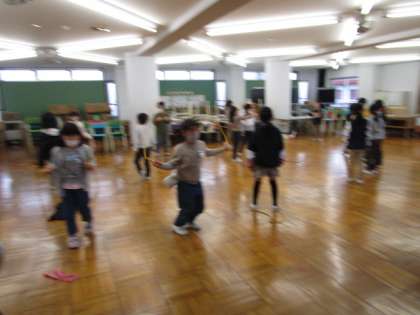 今日の新保っ子タイムは、「のびのび遊び」でした。雨が降っていたため、低学年と中学年はグラウンドに出れなかったので、ランチルームや廊下でなわとびをしたり、教室で遊びを工夫したりして過ごしました。高学年は、体育館でボール遊びをしました。