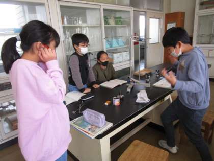 教室では、ノートをしっかり書く、グループで実験する、ペアで話合うなどして集中している姿が見られました。