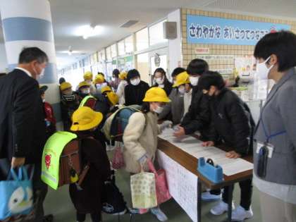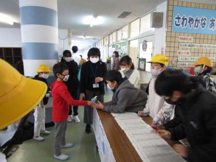 今朝、運営委員会は募金活動を行いました。新保っ子はドラえもん募金箱に募金を入れて、運営委員に渡しました。この募金は、赤い羽根共同募金、ユニセフ募金、国境なき医師団への支援等に役立てます。
