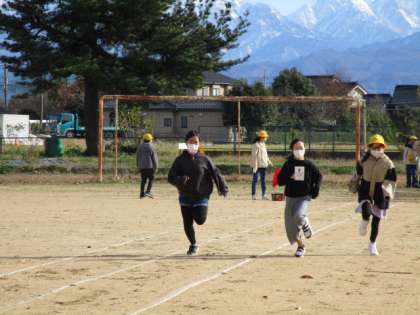 今日は、「すこやか運動」を行いました。中学年は短距離ダッシュの練習、高学年は50m走のタイム測定をしました。立山連峰をバックに思いっきり走っていました。
