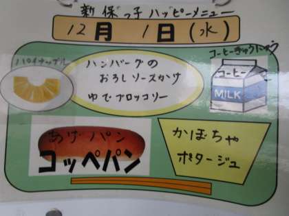 今日のランチ「新保っ子ハッピーメニュー」:12月1日(水)