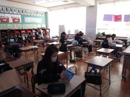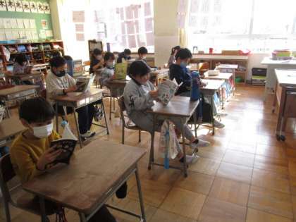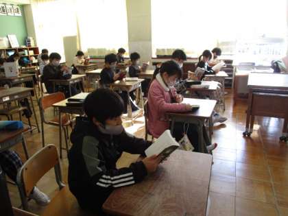 今日の昼休み後は、読書タイムでした。各教室で思い思いの本を読んでいます。