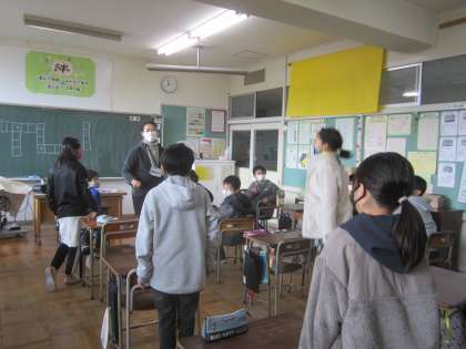 英語で質問に答えて、ジャンケンをするゲームですが、1組も2組も大盛り上がりでした。