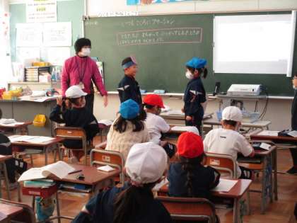 今日の「すこやかスマイル」は、低学年が間違ってぶつかった時、中学年が片付けてほしい時、高学年が同意を求められた時の3つの話し方のアサーショントレーニングを行いました。