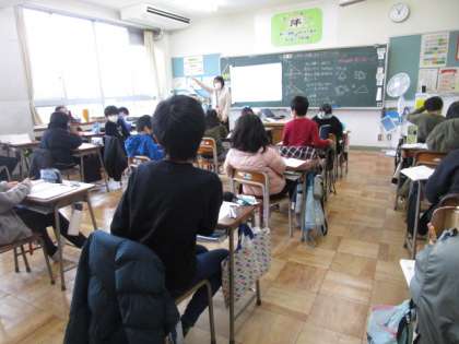 各教室では、ノートに板書や自分の考えをしっかり書いています。