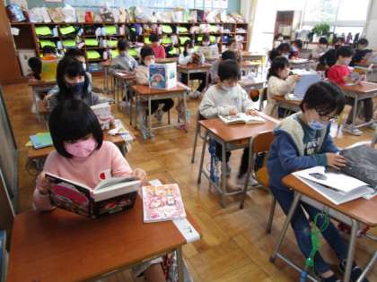 今日は「読書タイム」でした。1人1人が思い思いの本を読んでいます。