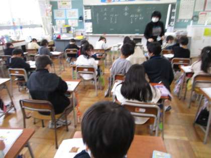 授業では、先生の話をしっかり聴いたり、ノートやプリントに自分の考えを書いたりして、力を高めています。