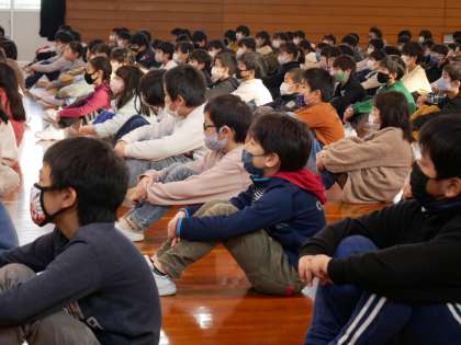 校長先生からは、2学期の振り返りと冬休みにがんばってほしい「命を守る」「生活を整える」「チャレンジを決める」について、話を聴きました。