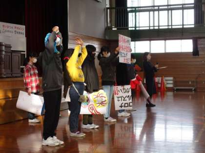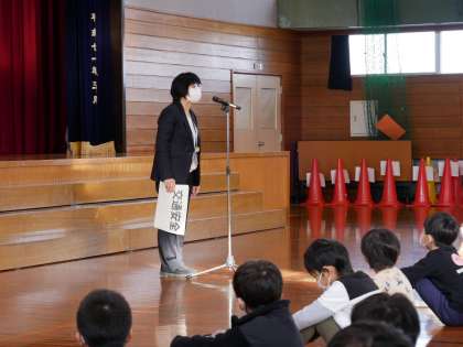 健康な冬休みの過ごし方について、養護教諭と保健委員会の子供たちが、クイズを交えながら発表や話でした。