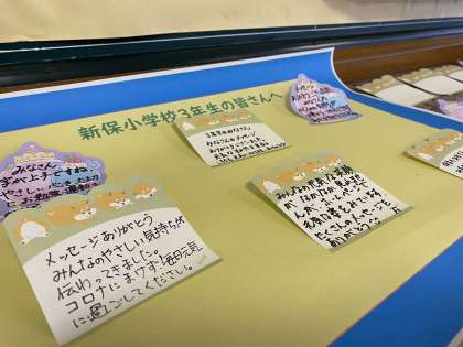 また、3年生全員で書いたメッセージもあります。地域の方々からのあたたかいメッセージも早速いただき、ありがとうございます!地区センター、新保文化会館にてぜひご覧ください。