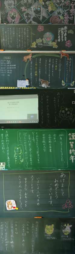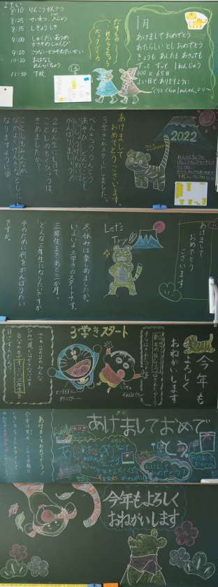 どちらの学校でも、始業式には、各担任が趣向を凝らして黒板にメッセージを書きます。