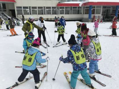 牛岳温泉スキー場に到着しました!各班、インストラクターの先生のお話をしっかり聞きながら頑張っています!