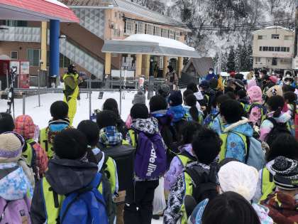 一日の活動を終え、閉校式を行いました。天候に恵まれ、大きなけがもないスキー教室となりました。たっぷりしっかり休んでくださいね。また学校で会いましょう!